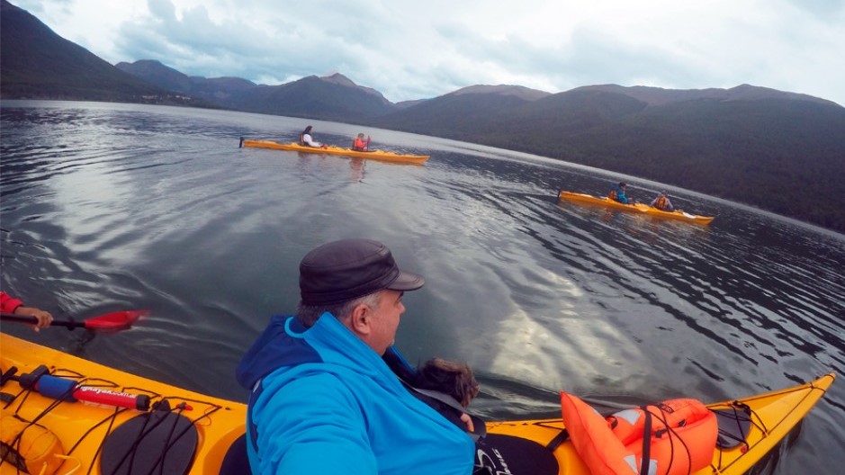 Em caiaques duplos, vamos navegando e apreciando a vista magistral das montanhas e da mata patagônica – uma oportunidade única para esquecermos do mundo, desfrutando integralmente da paz que a natureza proporciona.