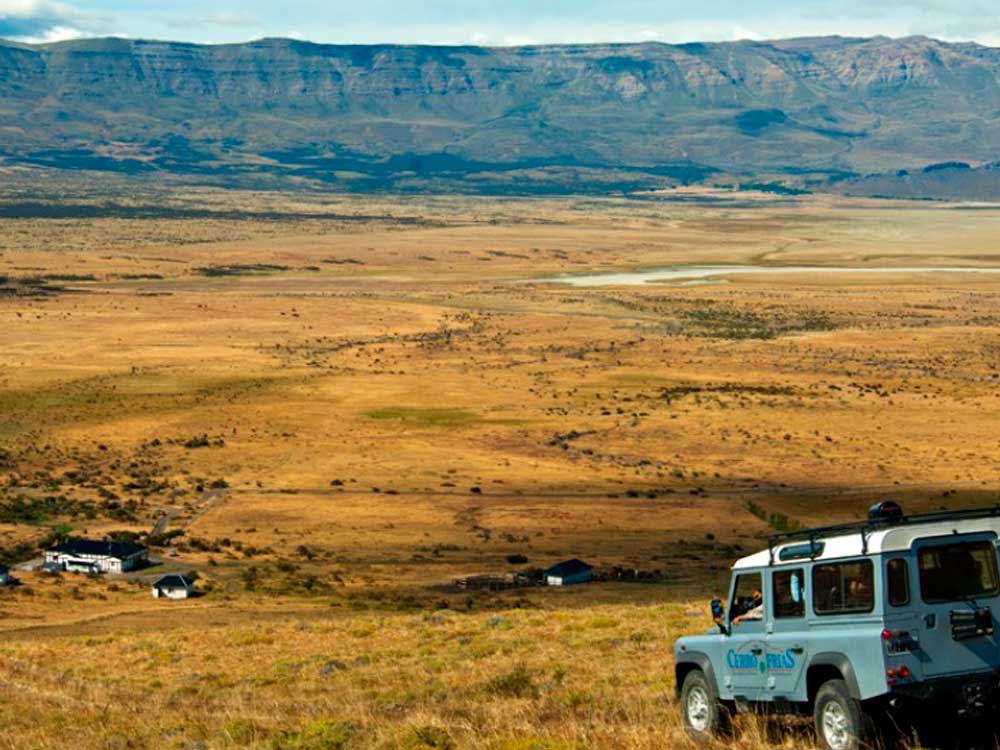 Comece essa emocionante aventura 4×4 com embarque em seu hotel em El Calafate. Após uma curta viagem de 20 minutos, chegaremos à fazenda para iniciar a subida ao Cerro Frías. Desfrute de um passeio por estradas sinuosas que oferecem vistas espetaculares do Lago Argentino e da estepe patagônica .