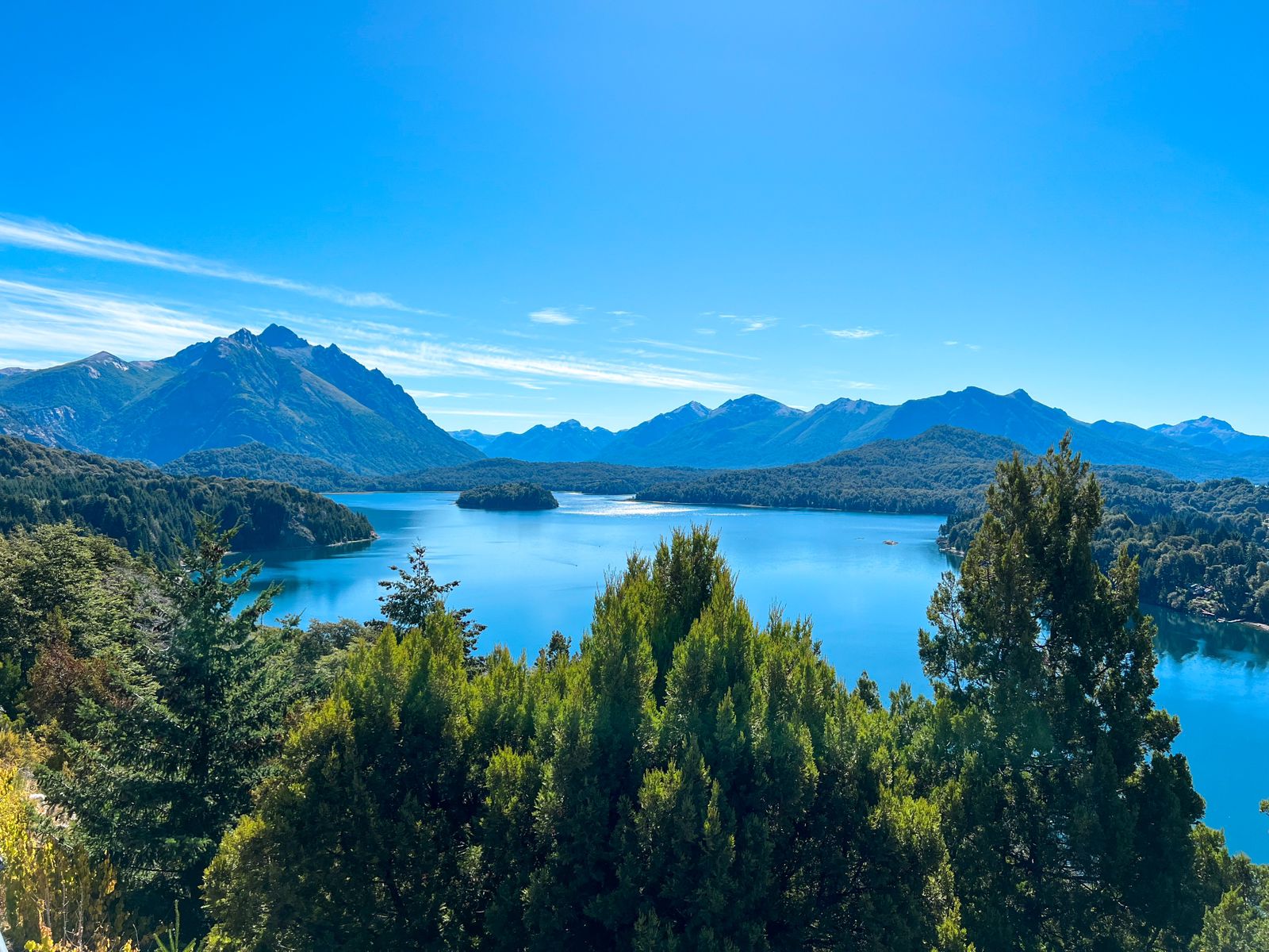 Durante o retorno, passamos pelo Mirante do Lago Moreno e pela Laguna El Trébol, fechando o circuito de aproximadamente 60 km repleto de lagos, montanhas e bosques nativos de rara beleza.