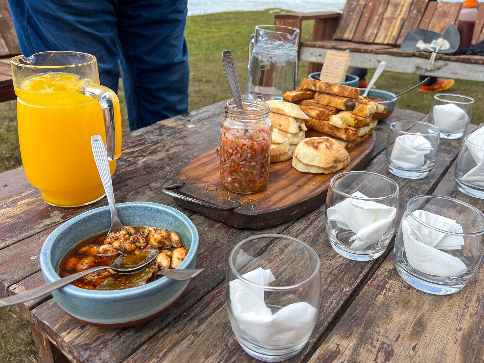 Após 15 Kms de rio abaixo, remando e desfrutando todo esse contexto, chegamos a Estancia Patagonica “El Rincón”, onde vamos saborear um delicioso almoço, com sobremesa e bebida incluida na beira do Rio Santa Cruz, onde vamos dar algumas asas a imaginação, afinal todos percorreram o mesmo rio, no mesmo local que Darwin percorreu.