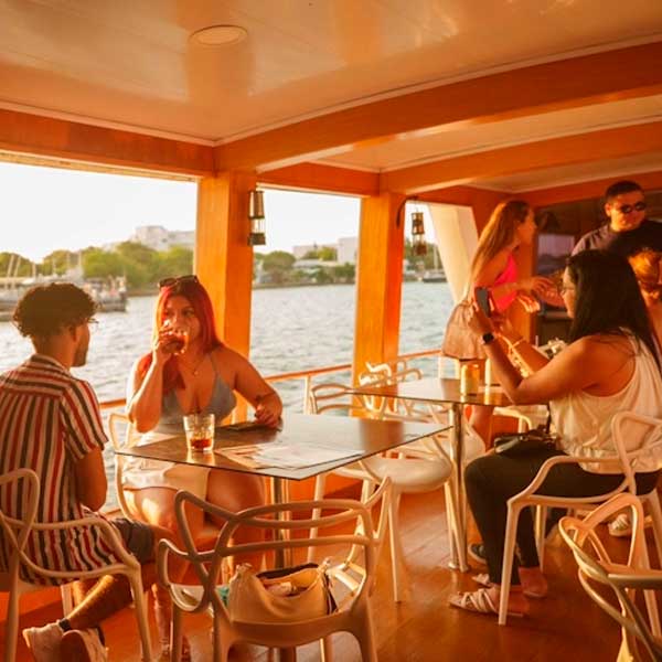 Iremos nos reunir no ponto de encontro para iniciar o cruzeiro. Durante este passeio, você poderá aproveitar o bar aberto do cruzeiro enquanto aprecia as vistas maravilhosas da baía de Cartagena das Índias ao entardecer.