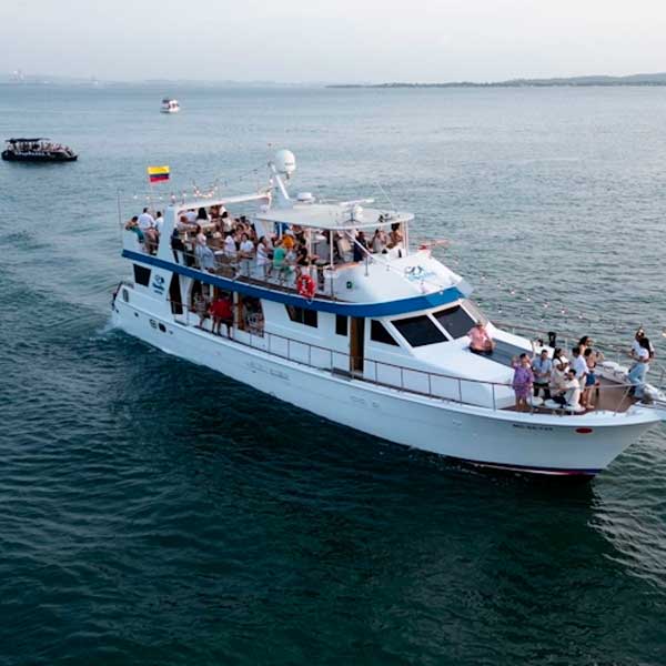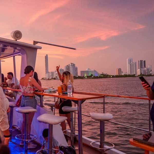 Desfrute de uma tarde maravilhosa com este Entardecer de Cruzeiro Sibarita enquanto navega pela deslumbrante baía de Cartagena das Índias.
