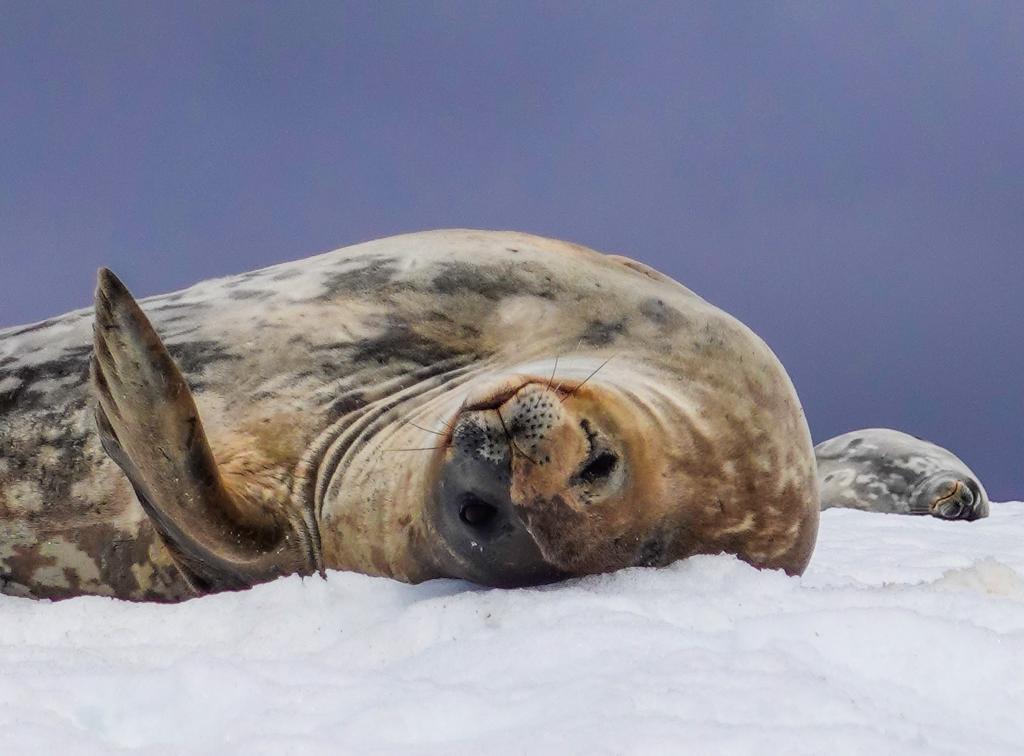 Excursões em terra podem incluir a Ilha Petermann, onde entre os pinguins Adelie, shags de olhos azuis e skuas, enormes e pesados elefantes marinhos puxam.