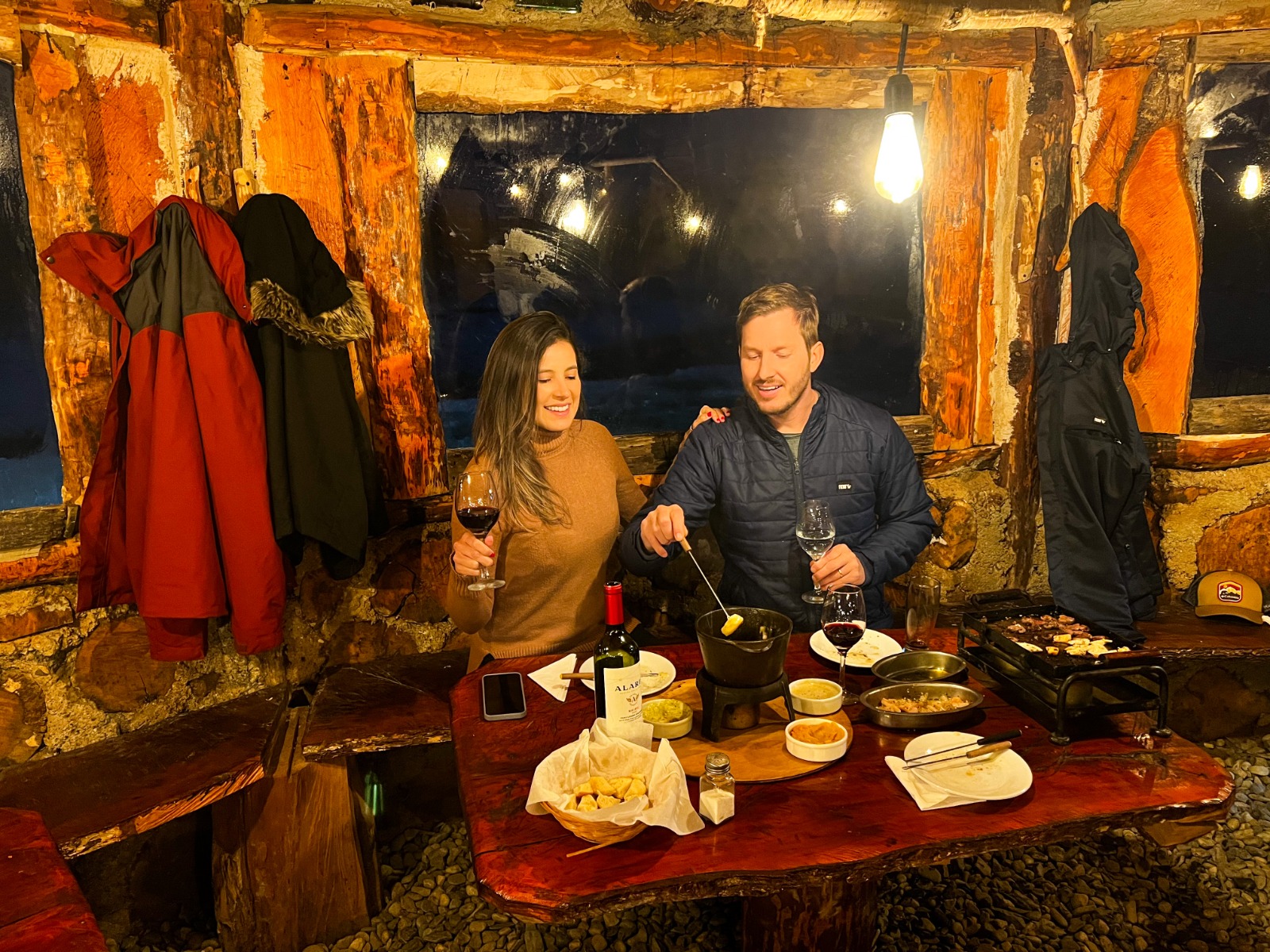 Ao final das atividades, todos serão convidados para estarem dentro do refugio onde vão desfutar de um delicioso fondue de queijo, regado a um bom vinho argentino ou outras bebidas. Bebidas livre (Vinho, refrigerante, água)