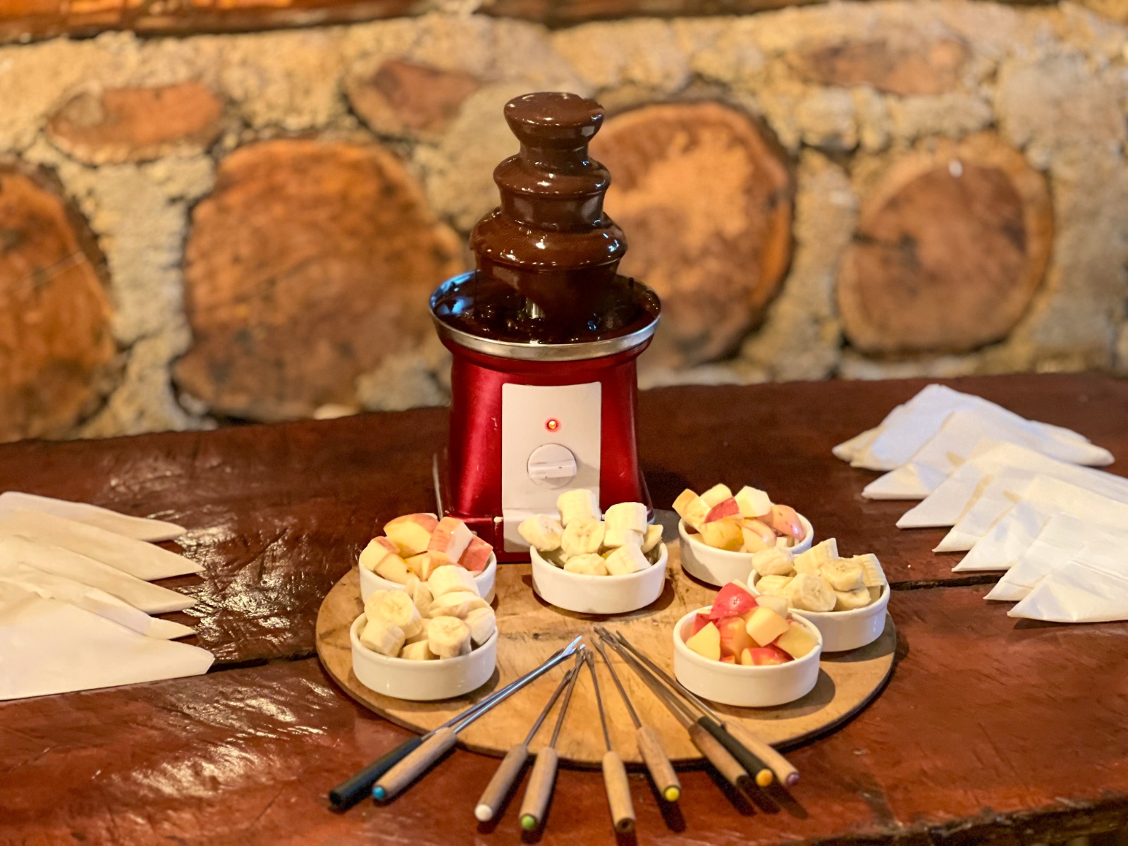 – Jantar fondue de queijo com carnes, cascata de chocolate com frutas e bebidas a vontade (Vinho, refrigerante e água);