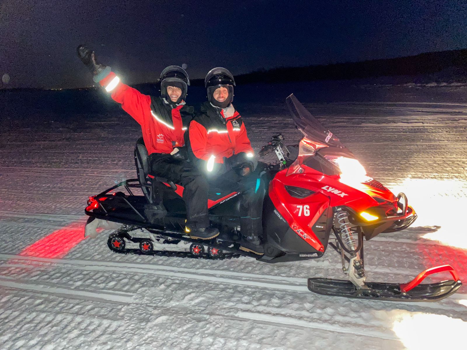 – 10 kms de moto de neve, cerca de 25 minutos (Cada moto são para 2 pessoas, fazendo um revezamento na metade do trajeto, caso queiram)