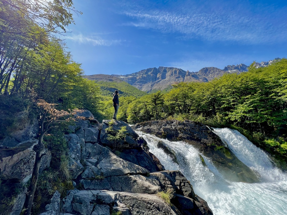 Trilha Vermelha, com 200 metros de queda e 2 km de percurso, permite acessar a base da geleira em uma hora, em ritmo lento, além de uma vista incrível da face norte do Monte Fitz Roy.