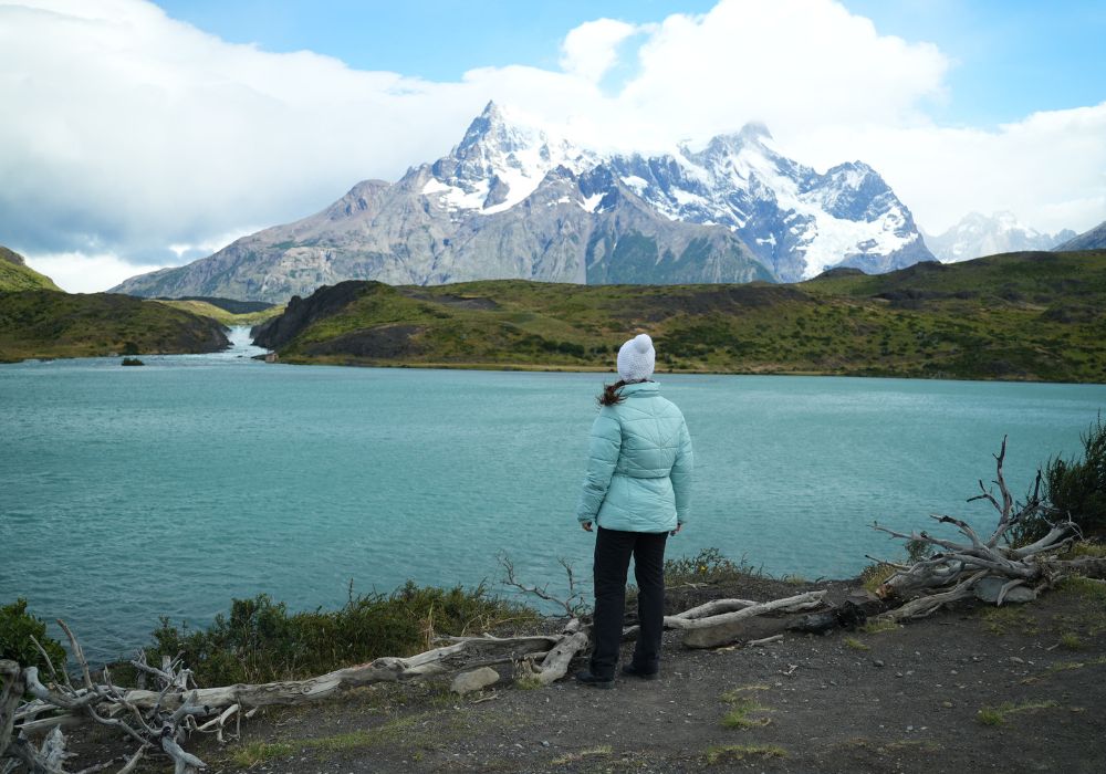 Depois, você irá ao Mirante Lagoa Amarga, onde terá uma vista mais de perto das torres, da lagoa e dos flamingos que lá habitam. Depois, você vai entrar no parque através da Portaria Lagoa Amarga e pegará o caminho para ver o lago Nordenskjöld. Você vai continuar o caminho para visitar o Salto Grande, de onde também terá uma vista panorâmica dos Cuernos del Paine. Depois, você vai passar pelo mirante do lago Pehoé e vai continuar em direção ao lago Grey. Lá você terá tempo livre para almoçar e caminhar pela praia, de onde terá vistas impressionantes do maciço Paine e, ao longe, a geleira Grey. Pode ser que você encontre algum pedaço de gelo levado pelo vento da geleira até a beira da praia.