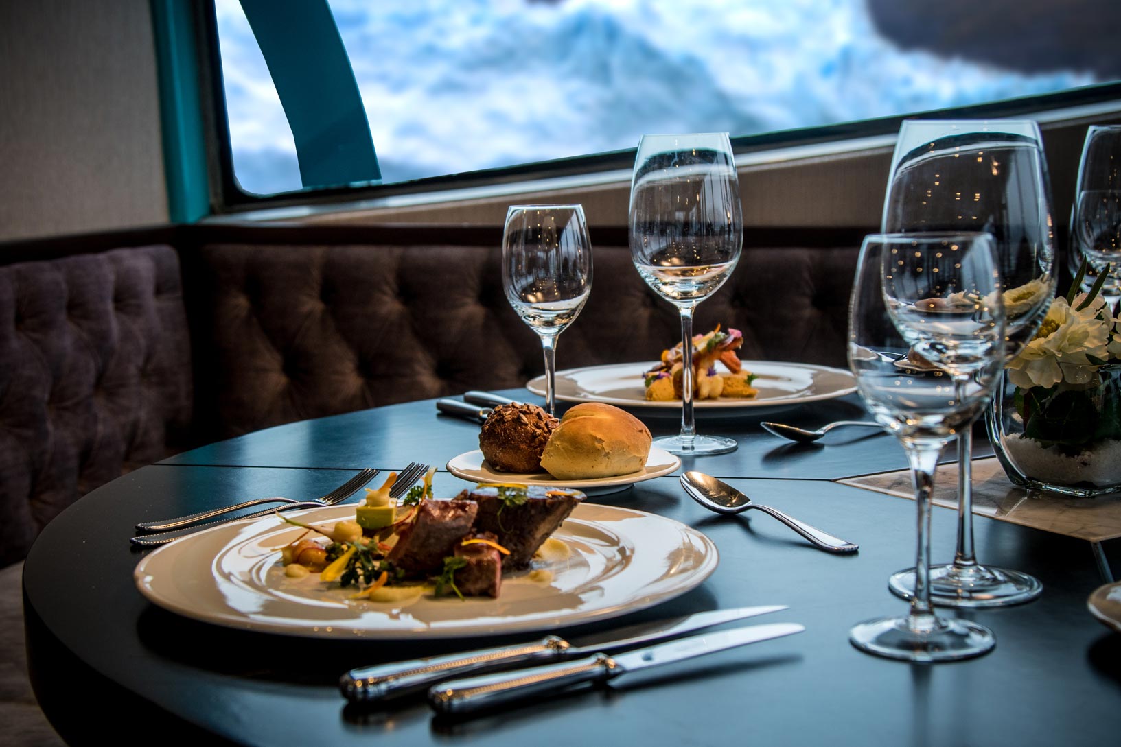 Enquanto navegamos, desfrutamos de um almoço, preparado com ingredientes típicos da Patagônia e servido em um ambiente aconchegante com vistas panorâmicas incríveis.