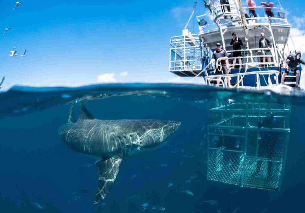 O mergulho com tubarões sai da cidade de Cape Town com direção a cidade de Gansbaai. Aventura segura com jaula, biólogo marinho, transfer, refeições e uma experiência inesquecível no Oceano Índico.