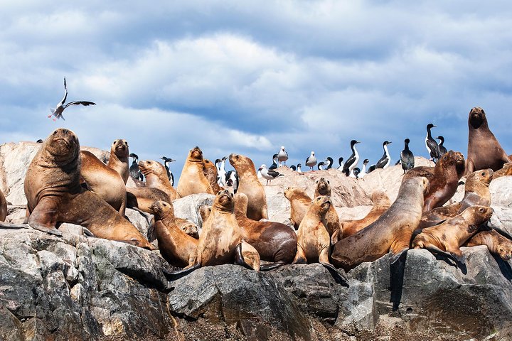 No caminho, passamos pela Ilha dos Lobos (a qual abriga dois tipos de lobo marinho. Junto a eles, é possível avistar também os cormoranes, que são geralmente confundidos com pinguins) e dos Pássaros (onde admiramos diversas aves marinhas fueguinas, tais como skúas, albatrozes, gaivotas, cauquenes e patos).