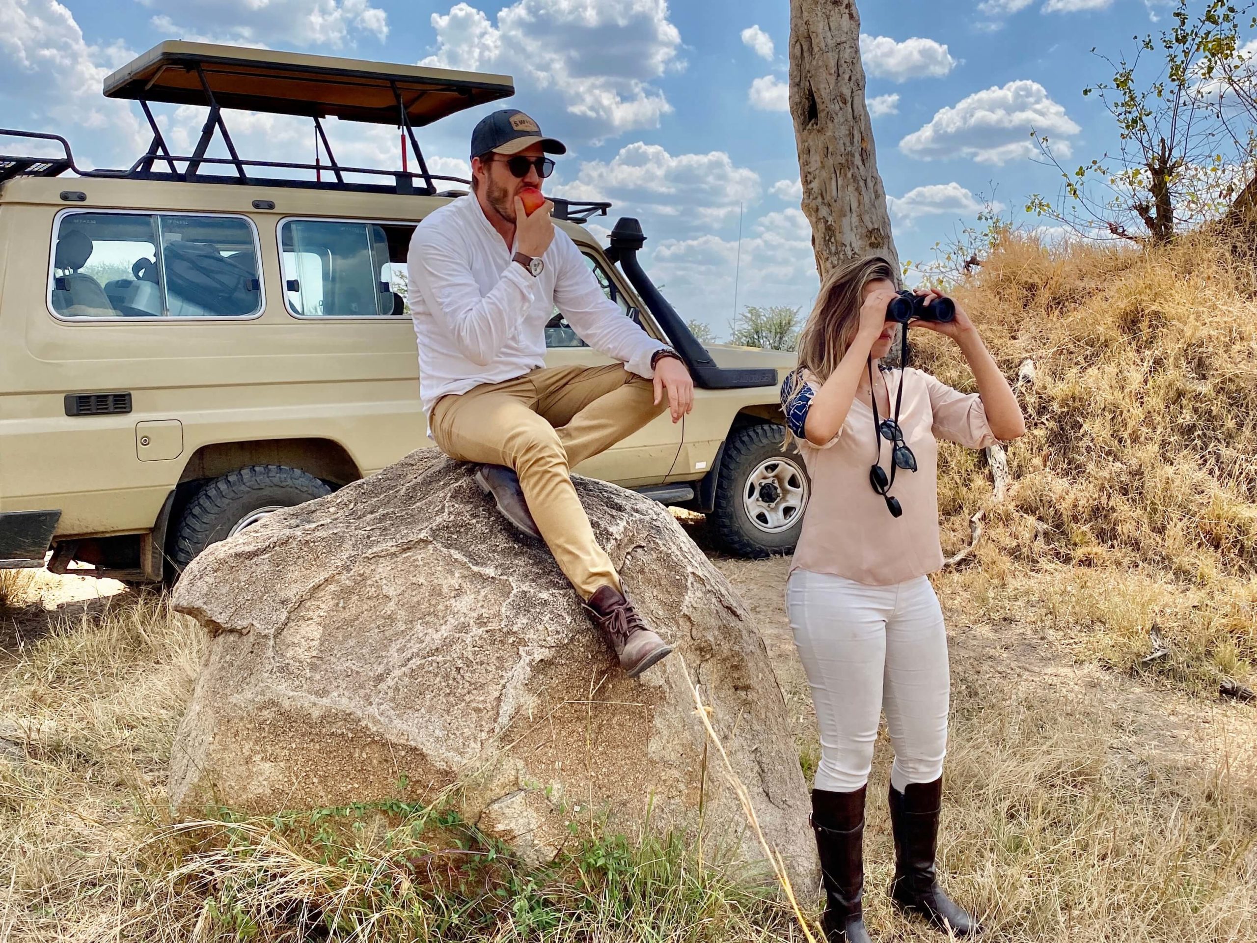 – Água potável no veículo durante o safári.