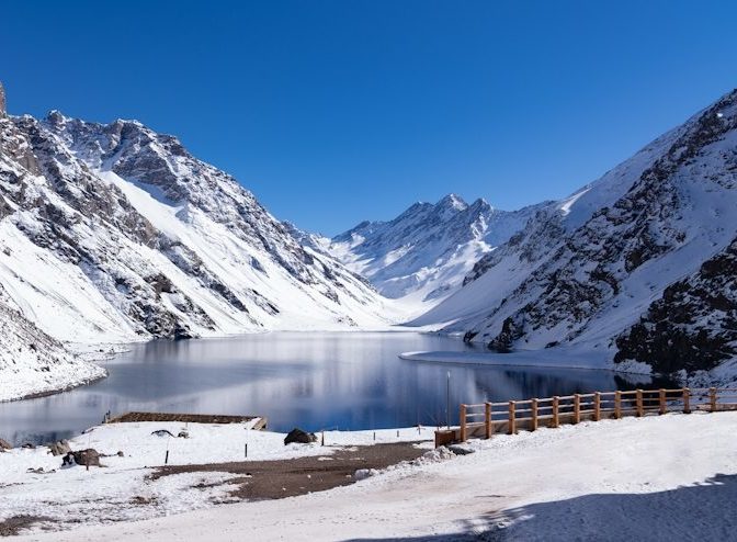 Conheça Portillo e Lagoa do Inca, uma lagoa de águas cor esmeralda localizada na Cordilheira dos Andes, no nordeste de Santiago.