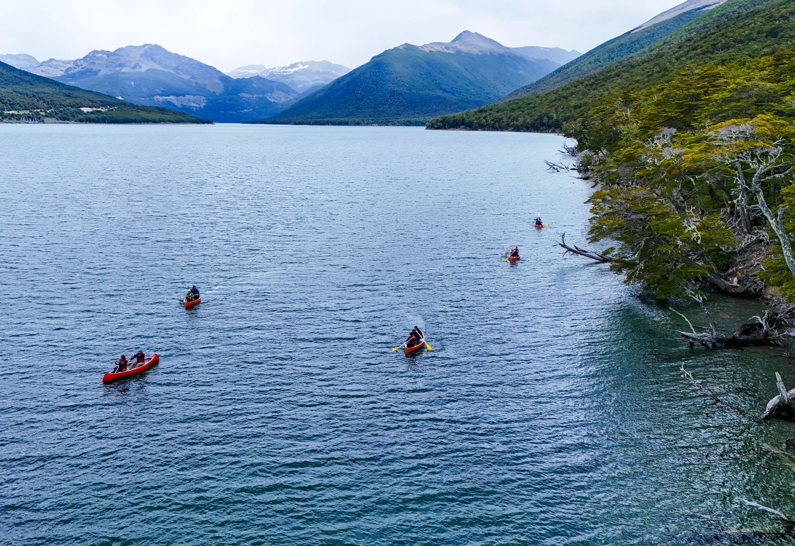 Após um passeio de canoa pelo lago (se o clima permitir), seguimos para a cidade de Tolhuin, onde passamos a noite na Hostería Kaiken. O jantar é servido no restaurante do hotel, com vista privilegiada para o Lago Fagnano.