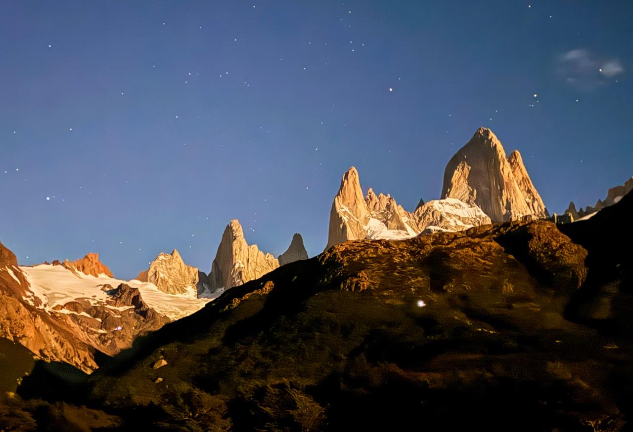 A noite é passada em acampamento, com céu estrelado típico da região. Ao amanhecer, há a possibilidade de contemplar o Fitz Roy iluminado pelos primeiros raios de sol. Após o café da manhã, iniciamos o retorno, com parada na Laguna Capri e tempo livre em El Chaltén antes de regressar a El Calafate.