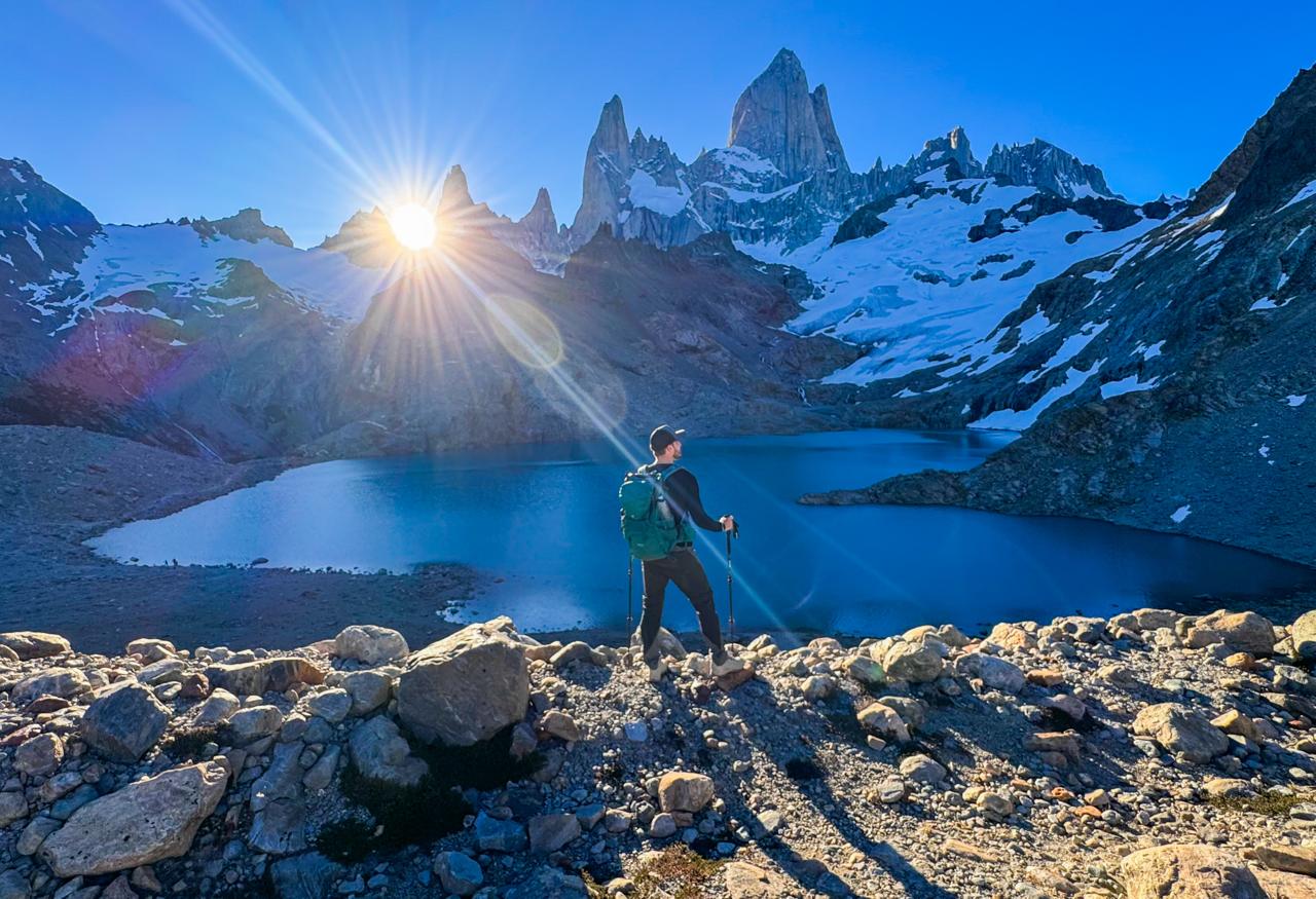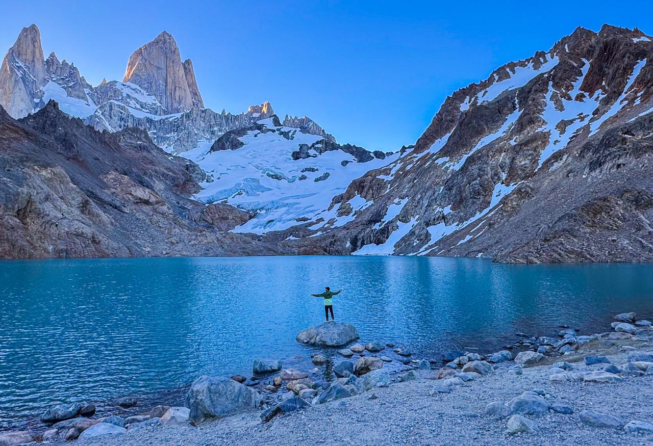 Durante o percurso, visitamos o Mirante Fitz Roy e seguimos até o Acampamento Poincenot, onde montamos as barracas e realizamos um lanche. No final da tarde, subida até a Laguna de los Tres, um dos cenários mais emblemáticos da Patagônia, aos pés do Monte Fitz Roy.