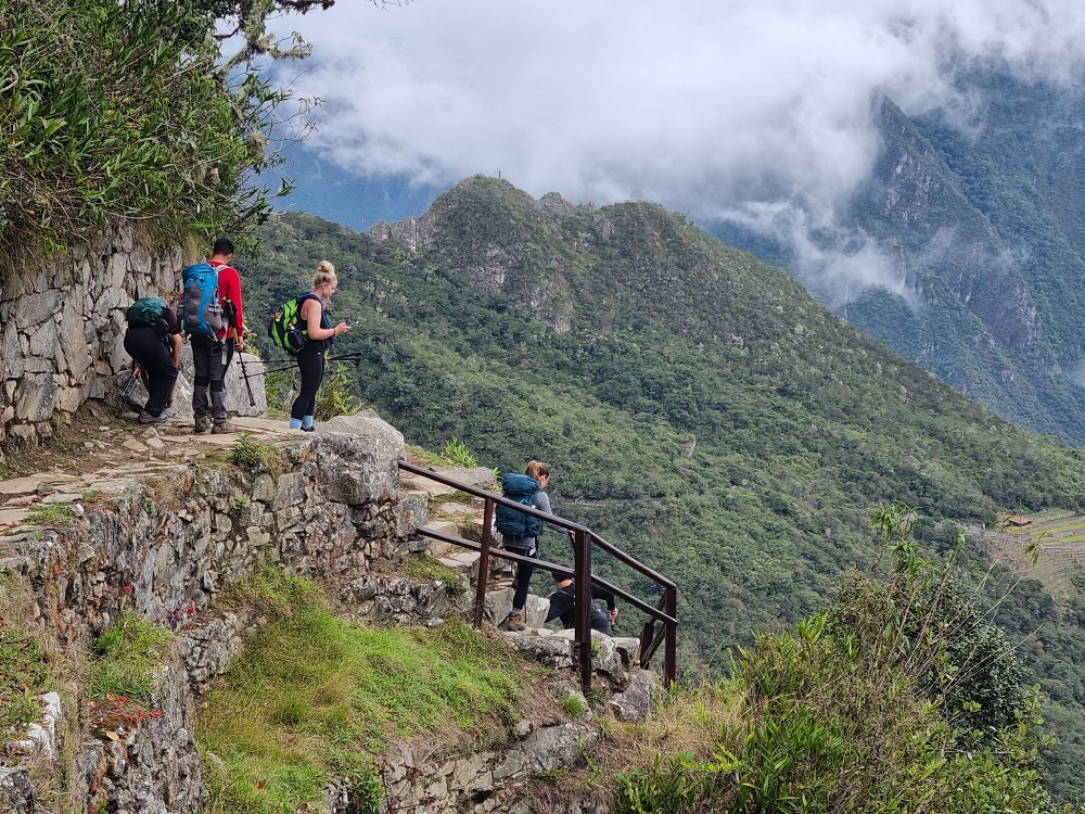 Na subida para Machu Picchu você desfruta de uma floresta cercada por névoa que se infiltra entre uma variedade de plantas, flores, orquídeas e animais da região andina, que o levam, em cerca de 4 horas, ao complexo arqueológico Inca Wiñay Wayna ou Siempre Joven (2650 m / 8.694 pés), beleza arquitetônica que cobre a encosta de uma montanha respeitando sua forma natural. Então você passa por Intipunku, a Puerta del Sol (2.720 m / 8.924 pés) desfrutando de uma vista espetacular de Machu Picchu e das montanhas ao redor.
