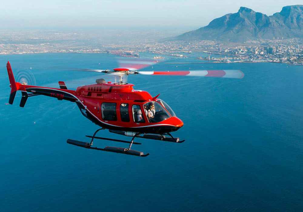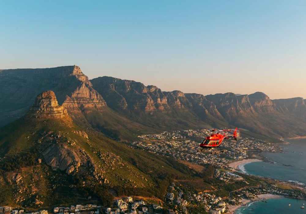 Voo panorâmico de helicóptero em Cape Town com transfer, vistas exclusivas das praias e montanhas.